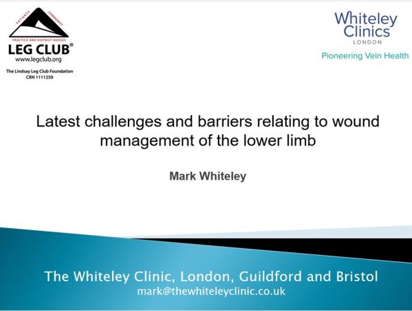 Mark explained that the key to treating leg ulcers successfully is to understand the underlying venous system and how to fix it. He explained that the book he had written, "Understanding Venous Reflux: the cause of varicose veins and venous leg ulcers" was a simple introduction for both patients and healthcare professionals to how vein problems because varicose veins and/or leg ulcers. Professor Whiteley showed the different patterns of vein disease that cause leg ulcers. He also showed how most of them can now be tackled by endovenous surgery. Therefore the keys to curing venous leg ulcers is to understand the underlying vein problem, having a venous duplex ultrasound scan by a specialist venous clinic and then having endovenous surgery to the underlying veins in suitable cases. This will result in a cure in 85% of patients with venous leg ulcers who are able to walk.