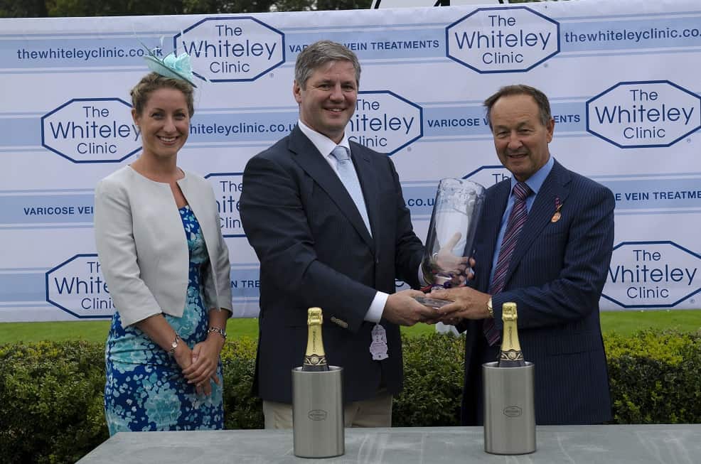 Presentations to winning owner and jockey were made by Professor Mark Whiteley and presentation to winning trainer, by Miss Vicki Smith - aesthetics director of The whitely Clinic